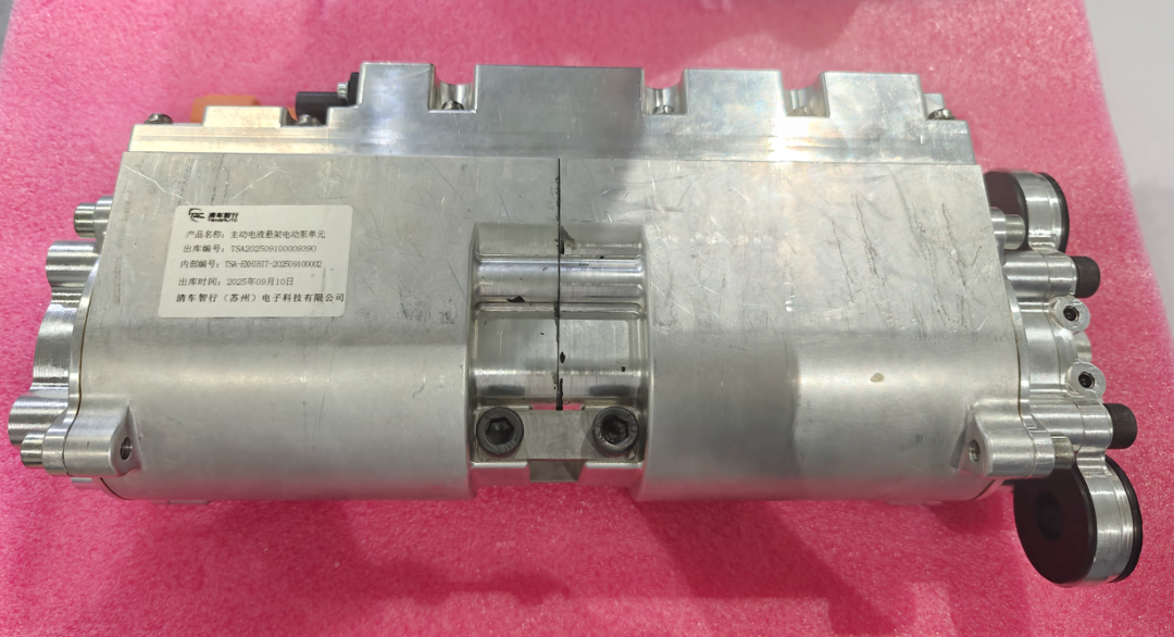 清车智行展示了主动悬架五合一MPU(Motor Pump Unit)的样品,如下图所示。