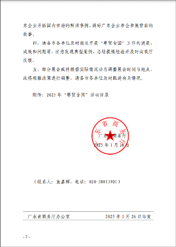 2025年2月7日,广东省商务厅关于印发2025年“粤贸全国”活动目录的通知,2025DMP 大湾区工业博览会入选2025年“粤贸全国”活动目录。
