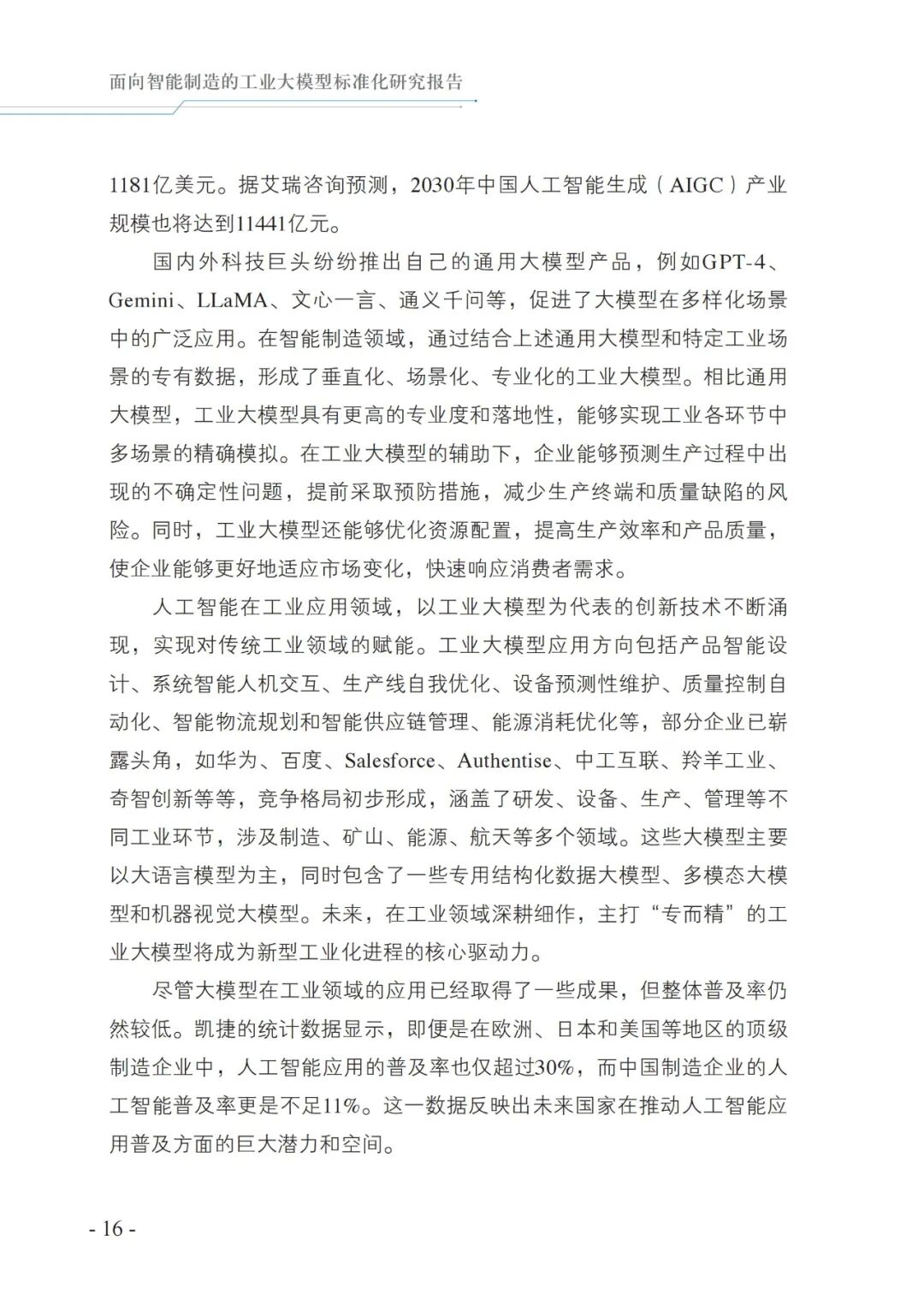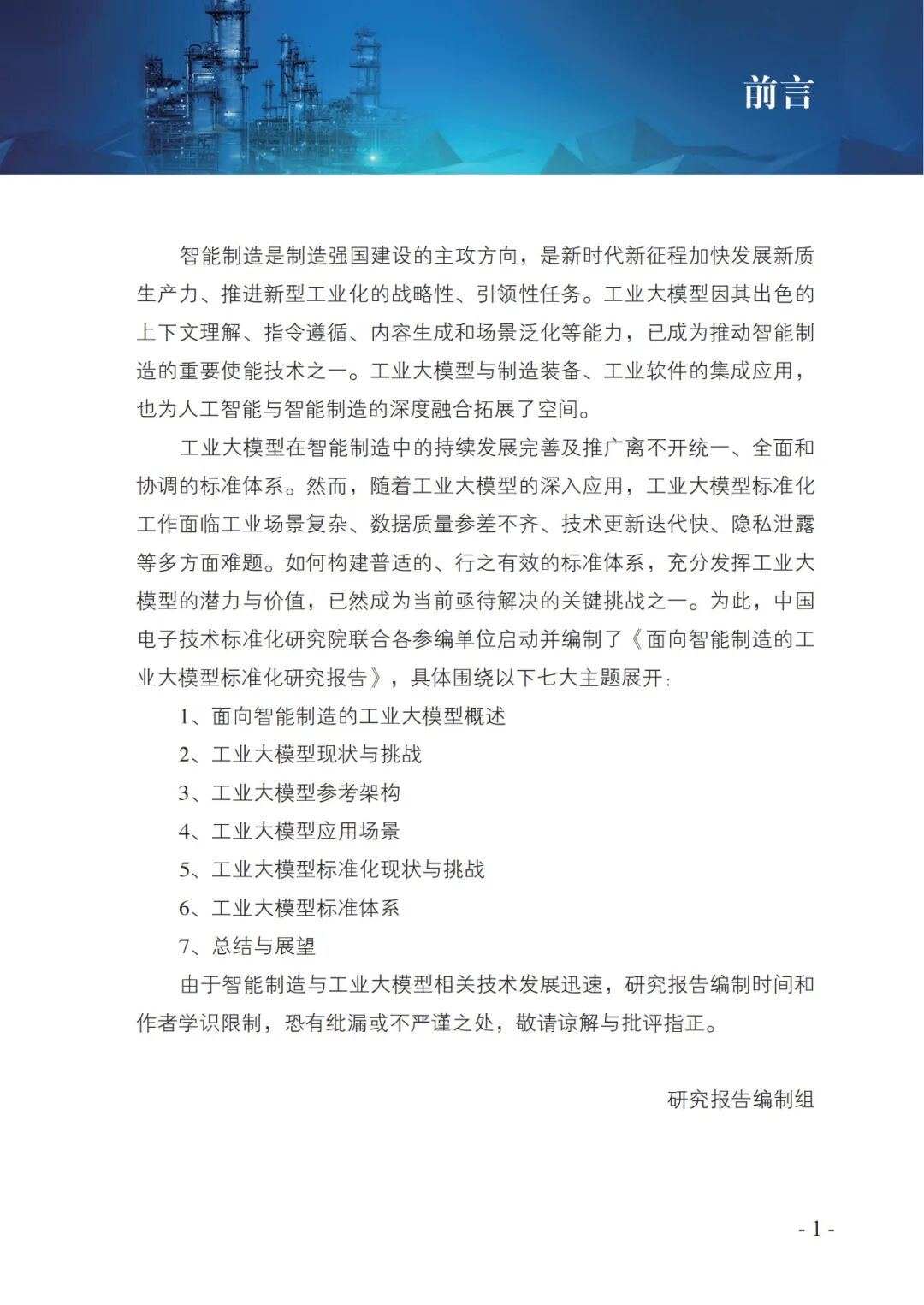 来源:中国电子技术标准化研究院2025年,工业大模型作为人工智能与智能制造深度融合的核心驱动力,正加速重构制造业的智能化体系。本报告将为政府、企业及研究机构提供工业大模型技术落地与标准建设的系统性指引,助力中国智能制造抢占全球竞争制高点。完整版获取方式本报告有121页,如果您觉得有帮助希望获取电子版内容参考学习请转发、评论、关注三连然后联系我:报告