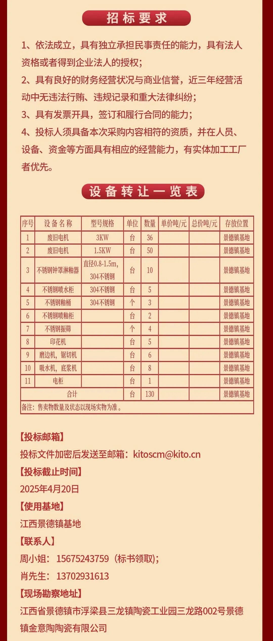 2、金意陶块蒙煤及废旧设备转让招标