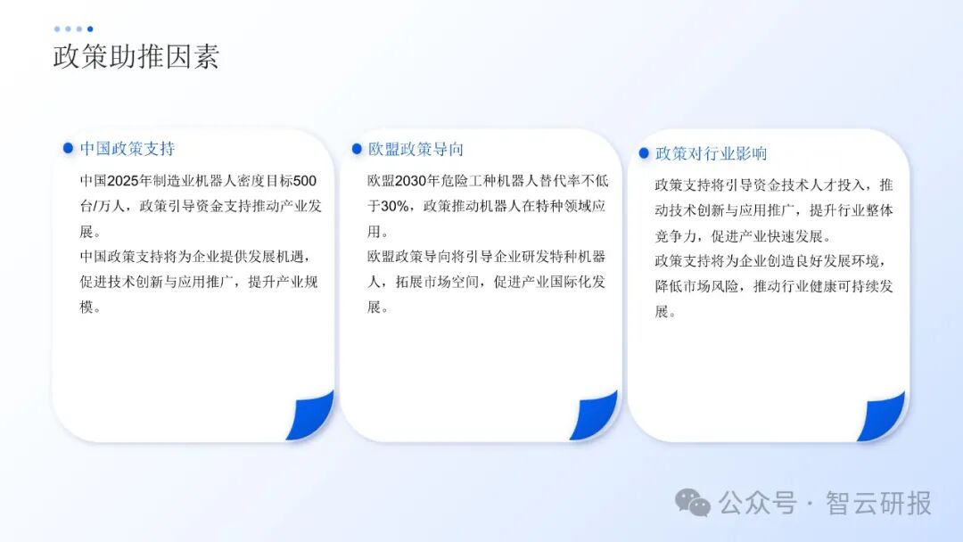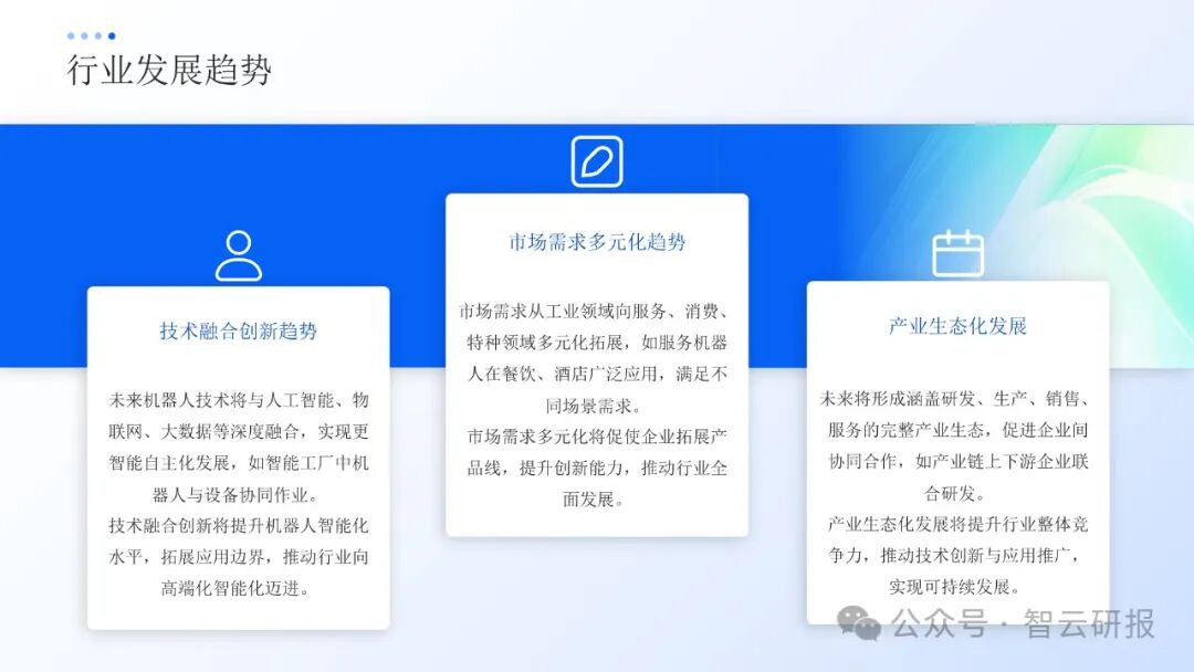• 制造业深化‌:汽车、电子行业自动化装配线需求激增,特种机器人(如高危环境作业)将成为重点方向
