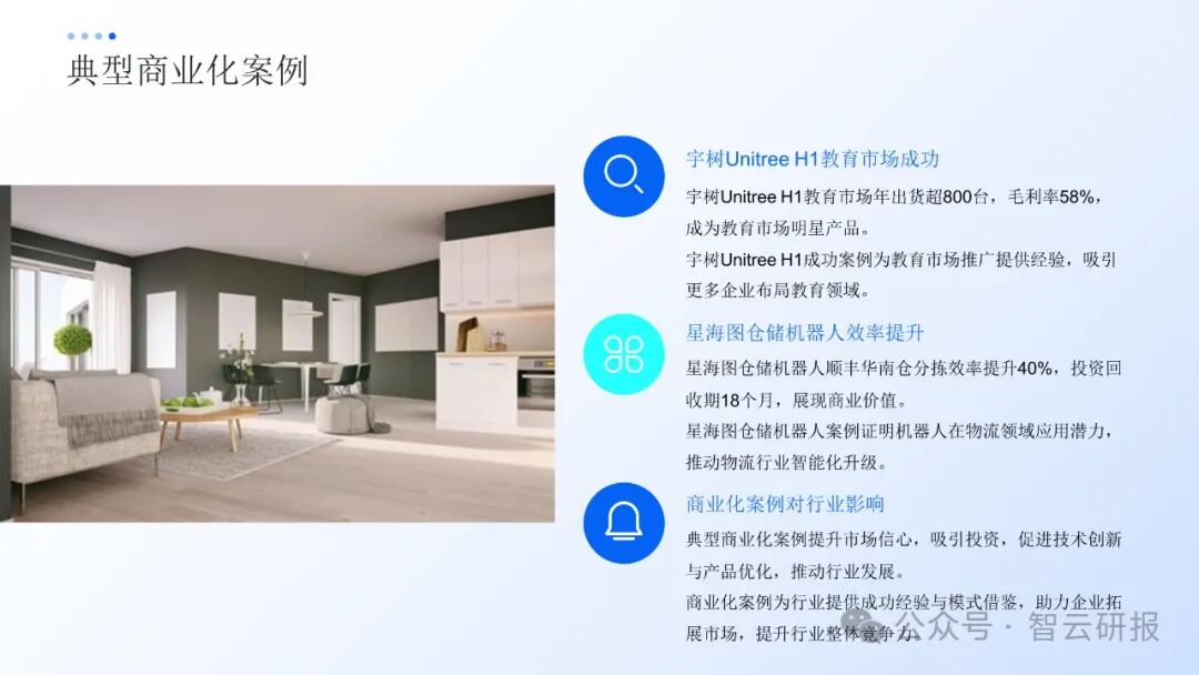 • 教育科研‌:宇树Unitree H1等教育机器人年出货量超800台,成为早期商业化成功案例