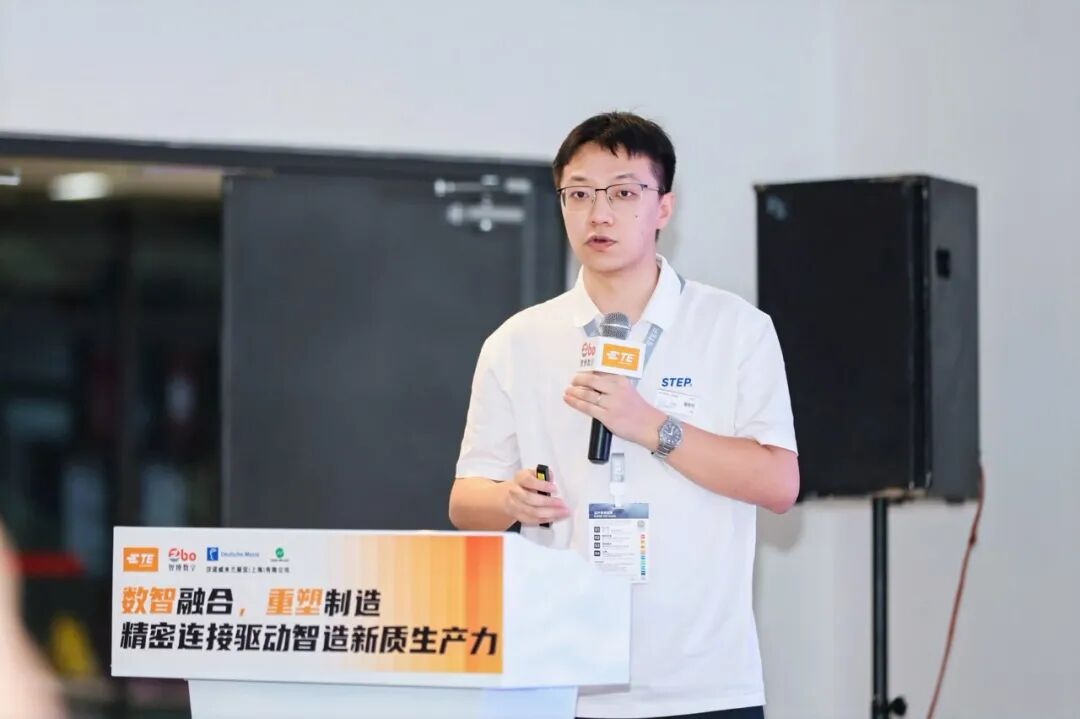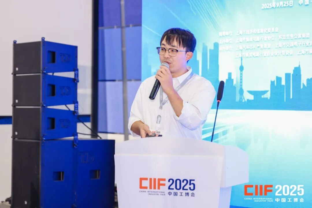 同日举办的“2025智造进化论高端会议”上,新时达焊接应用部产品总监唐若彬就同一主题进行深度解读。他从焊接专业领域切入,详细介绍了新时达在智能焊接技术方面的创新成果,展现了公司在特定工艺场景下的技术亮点和解决方案优势。