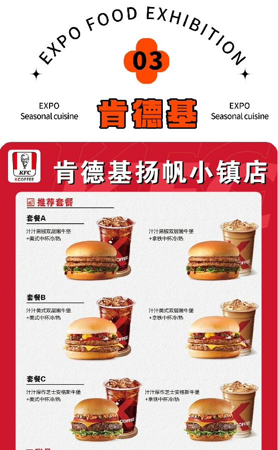 展馆内每个馆北侧二层以及中央廊道均设有餐饮区,中餐、西餐、咖啡等,应有尽有!