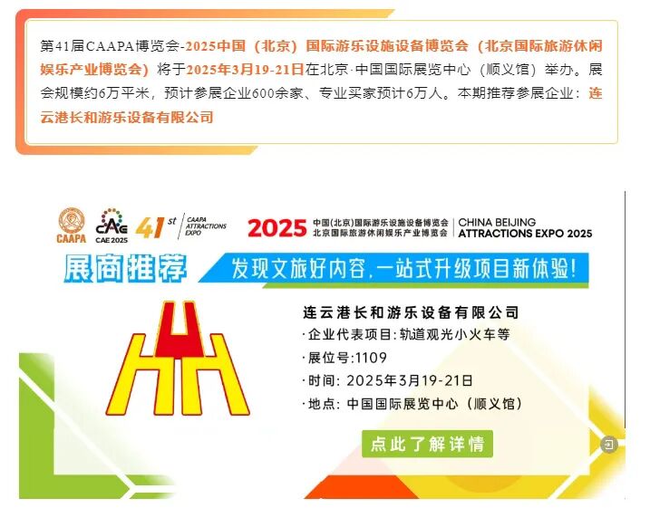 同时,公司积极开展定制服务,可以满足不同景区、不同文化、不同IP主题的专属定制需求。依托雄厚的研发实力、现代化生产工艺、专业的制造技术、完善的管理体系和先进的检验设备,长和游乐品牌影响力居于行业前列。