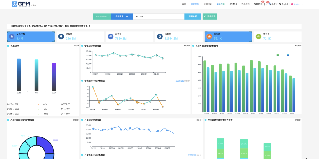 在GPM系统中查看市场分析报告、行业趋势、采购商需求标签,为参展企业提供精准的客户推荐列表
