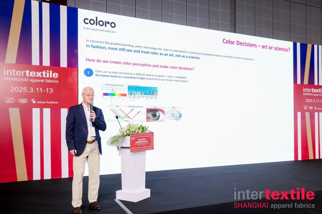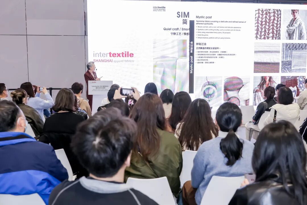 intertextile面辅料展2026春夏色彩、面料及流行趋势研讨会:来自意大利Elementi Moda的Ornella Bignami女士从人类的四种价值观角度全面介绍了2026春夏面料设计与流行趋势。