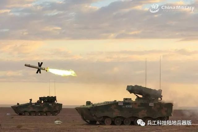 红箭-10是我国自主研发的先进光纤制导重型反坦克导弹,2012年正式装备部队,编号AFT-10反坦克导弹,采用履带式或轮式底盘,顶部安装8联装倾斜式发射架和储运一体发射箱和可伸缩的光电桅杆,可进行快速吊装装填备弹。红箭-10发射车内应该也配备了信息化能力非常高的人机交互终端,双显控操纵台可同时操控以间隔10秒发射的2枚导弹,同时打击2个不同的目标。红箭-10可以在没有发现目标的情况下先发射导弹,用导弹的光学导引头搜索地面目标,然后再进行攻顶打击,能够实时看到命中的部位,还可以通过“人在回路中”的手段临时控制转换攻击目标。