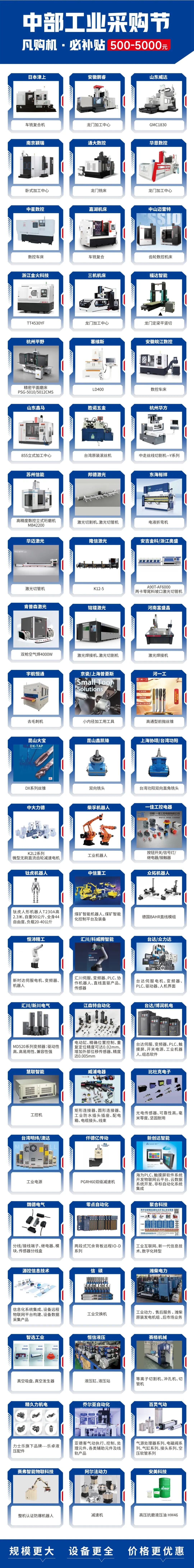 现场将汇聚东台精机、山东威达、日本津上、安徽鹏睿、南京颖瑞、格勒玛数控、华恩数控、中星数控、宝鸡机床、卓朴智能、南京新浙、浙江日发、艾格森、浙江中星、浙江金火、云南一机、中山迈雷特、山东三机、福达智能、浙江锯力煌、锐力智能、浙江得力、宝石花、邦德激光、东海智能、隆信激光、嘉泰激光、肯普森激光、华迈激光、安吉金科、铭镭激光、宇航恒通、株钻、智杰优搬运、西门子、汇川、台达、新时达、零点、雷普、泰科、潍柴、米思米、明纬、金升阳、中信重工、安川、埃夫特、长广溪、克鲁斯、钛虎、艾利特、SKF、博世力士乐-乐卓、亚德客、百灵、恒信等来自全国各地超3000家优质品牌展商,携各自王牌产品同台炫技,海量创新解决方案等你来探索!